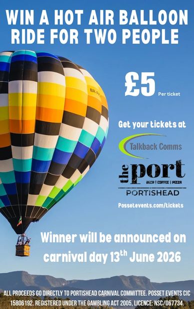 From October through to carnival day the committee runs a fully licenced Grand Draw. The top prize is a hot air balloon ride for two people along with several other great prized on offer. Tickets sell for just Β£5 each.