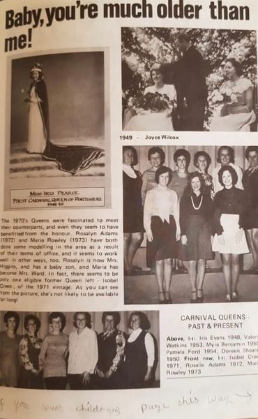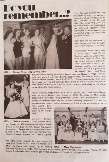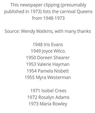 The Carnival Dance was held at Folk Hall in 1955 and that very night the newly crowned Carnival Queen Myra Westerman met a gentleman named John Benjamin, who had come from London to work on the power station, soon after the carnival dance he decided to stay in Portishead and they were married 2 years later in 1957.